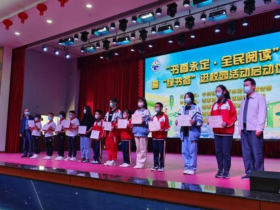 5月5日,2022年“书香永定·全民阅读”张家界市“绿书签”进校园活动启动仪式在民族小学举行。