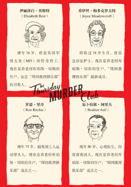 没想到,“周四推理俱乐部”刚成立不久,他们的身边就开始出现一连串错综复杂的凶案,这让四位平均年龄77.5岁的老人兴奋不已,各个拿出看家本领,帮助年轻警探们侦破一起又一起连环凶案。