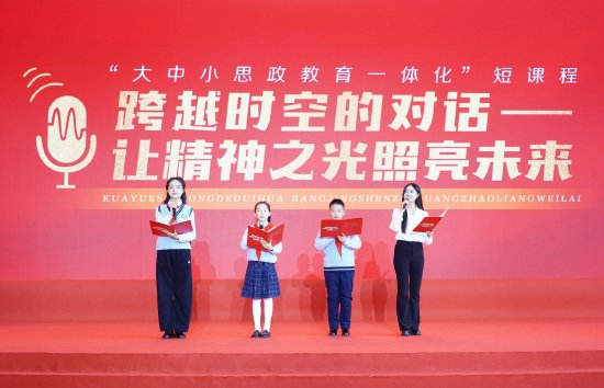 在“传承·接力”章节中,合肥一六八小学、中学及安徽大学的学生代表,共同呈现了一堂别开生面的“大中小思政教育一体化”微课程《跨越时空的对话——让精神之光照亮未来》。同学们生动的表达和真挚的情感,展现了榜样精神在不同年龄段青少年中的传承与接力。