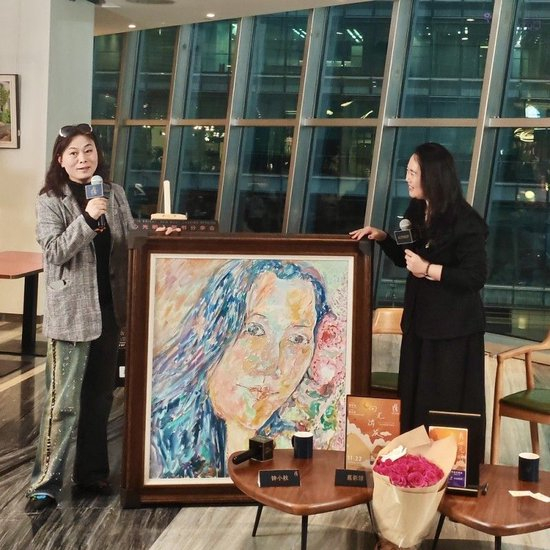 在活动的特别环节,著名画家郝俪向葛影琼赠送了为其创作的肖像画《有光女孩》,以艺术的形式致敬其如光般温暖、充满生命力的特质。